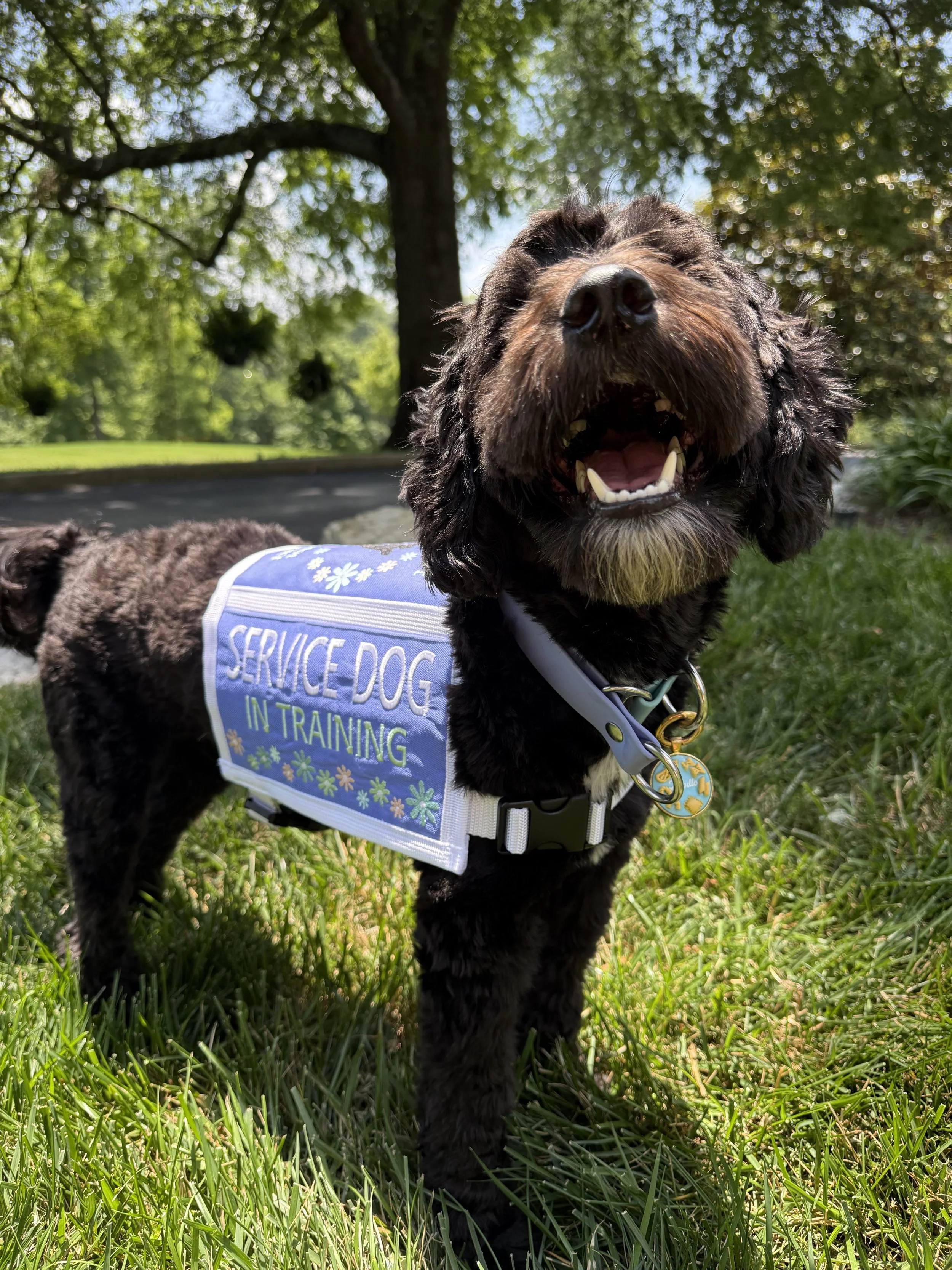 Meet the team: Nicola (the maker) and Noodle (the muse!). I’ve been sewing for over a decade, but Noodle is the real CEO. He’s a Mini Poodle with a big smile and a love for life that inspires every custom sweatshirt and service vest we create. We started this shop to turn your favorite pet memories into wearable art that stays with you forever.